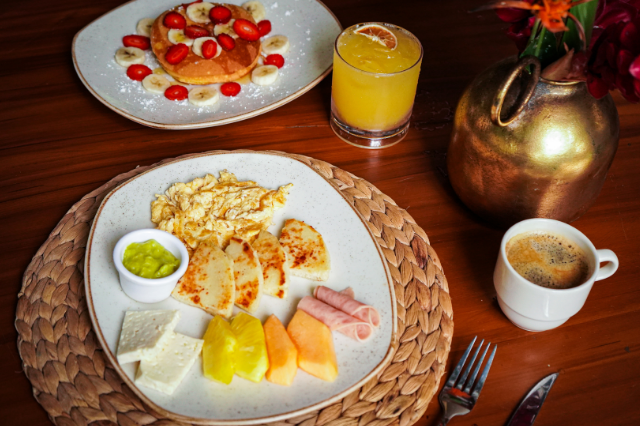 Huevos al gusto acompañados de guacamole, arepa, queso costeño, jamón, fruta fresca y jugo del día.