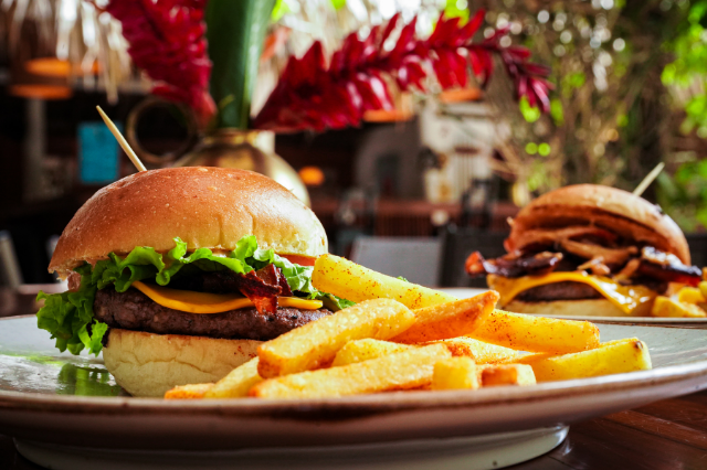 130 gr de carne de res premium, pan artesanal, queso cheddar y vegetales frescos acompañada de papas a la francesa.